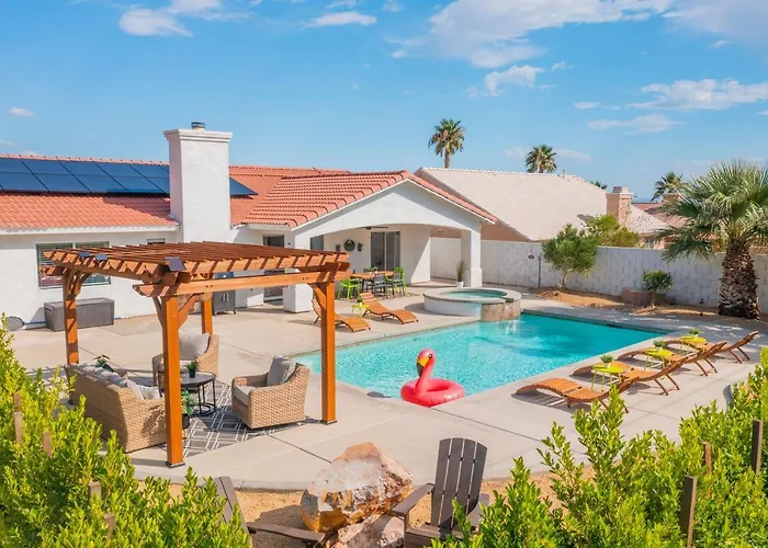 Desert Oasis-Large Pool & Spa, Firepit, Gameroom, Hammocks villası Palm Springs Uluslararasi havaalanından arabayla 22 dakikalık bir sürüş mesafesinde konaklamayı sunar. Tesiste jakuzi, sıcak küvet gibi olanakların yanı sıra özel yüzme havuzu bulunmaktadır.